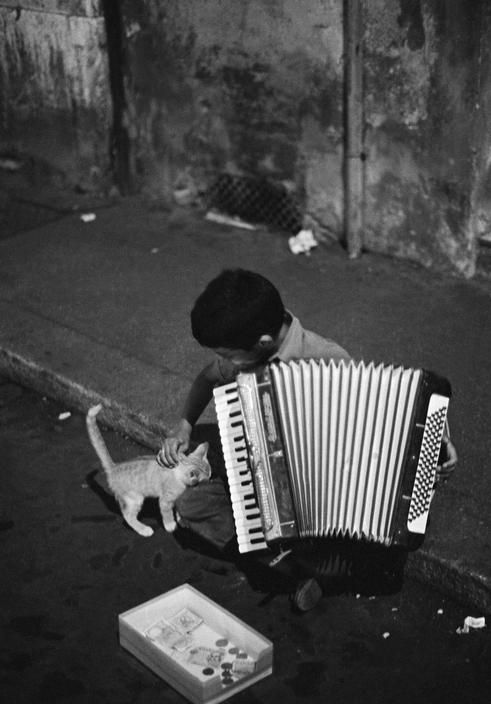 ​A contracorriente de la estética de la seducción y manipulación capitalista, los gatos que merodean alrededor de Sicilia, los cuales inmortalizó el fotógrafo y filósofo Ferdinando Scianna, son un ejemplo de una comunidad de pobres. Los gatos peregrinan por Sicilia sin propiedad ni propietario, sin ciudadanía ni pasaporte. En una de sus fotografías Scianna muestra el instante en el que, ya suspendido en el aire y casi celeste, un gato desciende con un salto –vertiginoso y asombroso, al menos, para nosotros– de la cima de un monumento hacia el suelo. En otra fotografía se expone a un pequeño felino que deambulando por las calles se detiene hospitalariamente para ser acariciado por un desconocido, un músico callejero que también tocará para desconocidos. La destreza felina no es sólo atlética, sino también ejemplo de un con-tacto hospitalario con el extraño que hace de la ciudad un gran jardín en el que impersonalmente, sin el peso ni afán de ningún yo propietario, pasear, jugar, y gozar del misterio de lo inapropiable. La plenitud y serenidad en cada uno de estos peregrinos mendicantes es índice de una extrema apertura a la riqueza del don. Scianna, de esta manera, expone el eidos de la resurrección de los animales.​